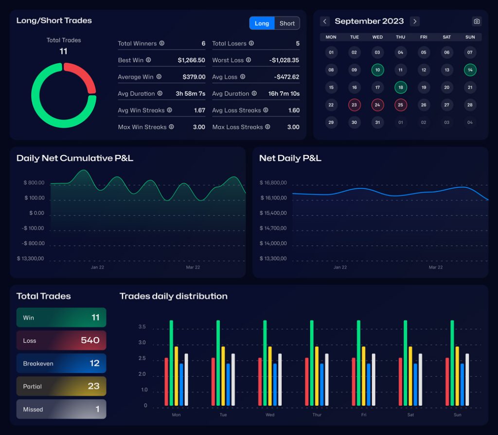 MTJ is built to cover every single aspect you need in order to succeed as a Trader, From journaling, to analytics to backtesting your strategies. Every single analytic we include in the platform helps you understand better your Trading performance and get better as a Trader.